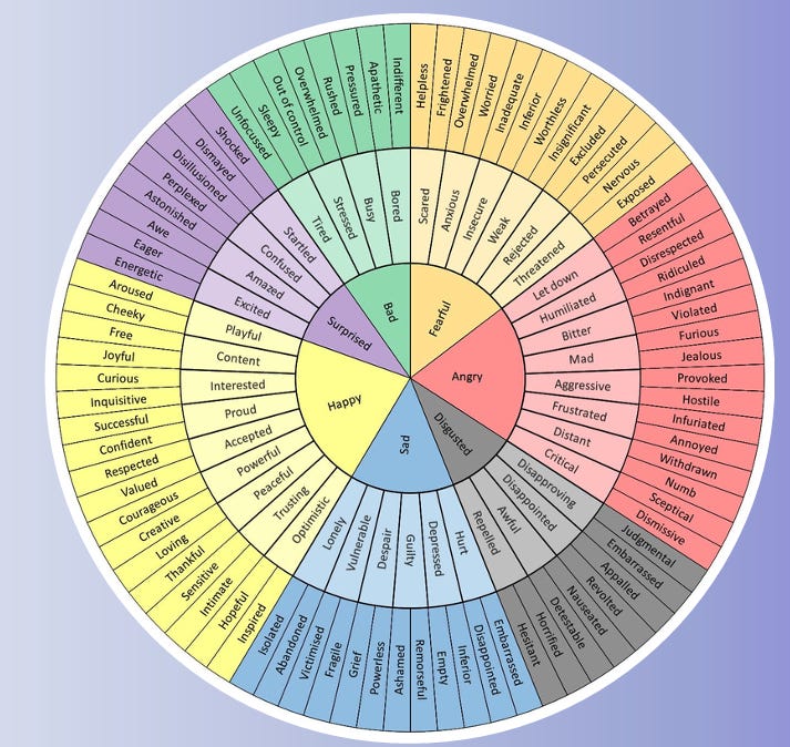 Christine was in a session with me, so we went to a feelings wheel to look at the basic feelings; Surprised, Bad, Fearful, Angry, Disgusted, Sad, and Happy. She realized the anger category fit best and in fact that the qualifiers “let down”, “humiliated”, and “betrayed” were there for her. As she saw it all there splayed out, we went back to how the work comment may have felt worse and like all three of those words, given the proximity to the issue with her brother, and her boss also being an older male seeming to talk down to her. We explored if she has the energy to change the dynamic with her brother or if it made more sense to set a boundary with him and direct her change motivation to her workplace, where she needed to show up every day. She was shocked how easy the choice was and reported to me that what was ahead felt “good hard”, by which we both agreed, it felt like inner work!